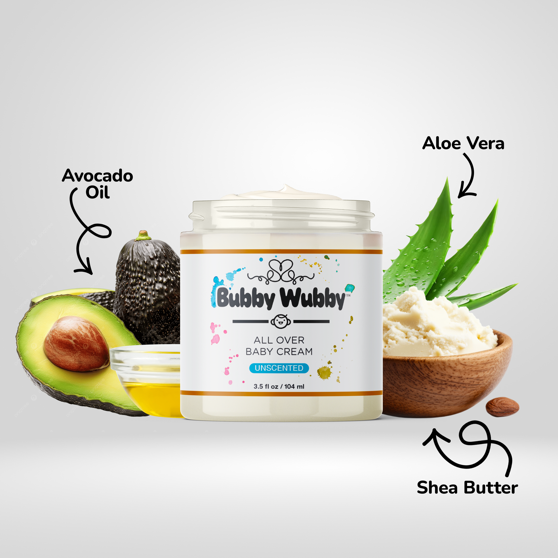A cream that leaves behind moisture you can see! Our cream is rich, plant-based, and packed with a moisture-rich blend of shea butter, avocado, vitamin E and sunflower oils, as well as hydrating aloe to nourish the skin. We know how delicate a baby's skin can be, which is why our products are formulated with minimal ingredients needed to be functional and nourishing.